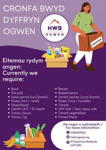 Os ydych chi’n cael trafferth gyda’r argyfwng costau byw ac angen cyngor, dewch i’n gweld ni yn Hwb Ogwen - 27 Stryd Fawr Bethesda. Rydym ar agor 5 diwrnod yr wythnos a gallwn gynnig cymorth gyda'r canlynol: